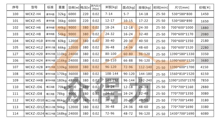 鼎美電熱系列蒸飯柜詳細技術參數及統一報價: