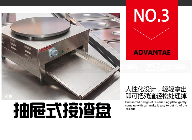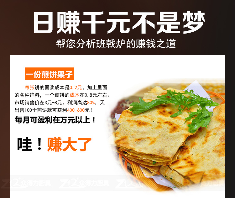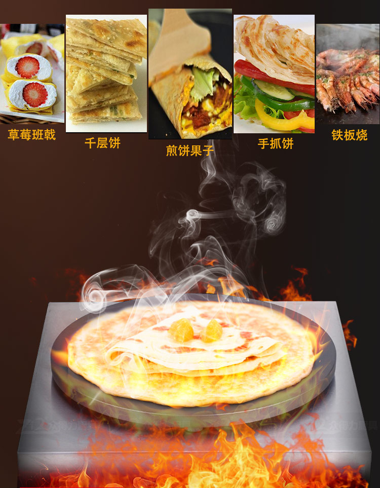 班戟爐是一種恒溫加熱,速熱快的美食設備,整機外殼采用優質不銹鋼材質,板材厚,加熱盤采用生鐵鍛造,表面光滑,食品級不粘涂層拋光處理,可加工制作各種煎餅。