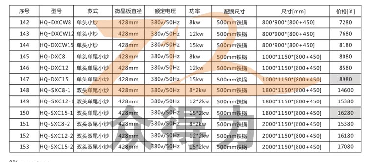 小炒爐系列詳細(xì)技術(shù)參數(shù)及統(tǒng)一報價