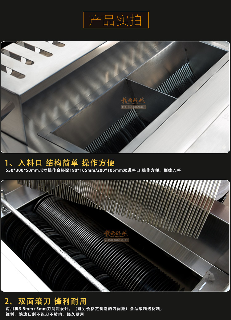 贛云2017款大型切肉機,工程款切肉片肉絲機,采用1.2mm304不銹鋼板材加工設計,配備3kw大功率純銅電機,380v工業用電,使得產品性能穩定,雙滾切刀設計,切肉效率高,雙規格切肉刀具組合,適合大眾需求。