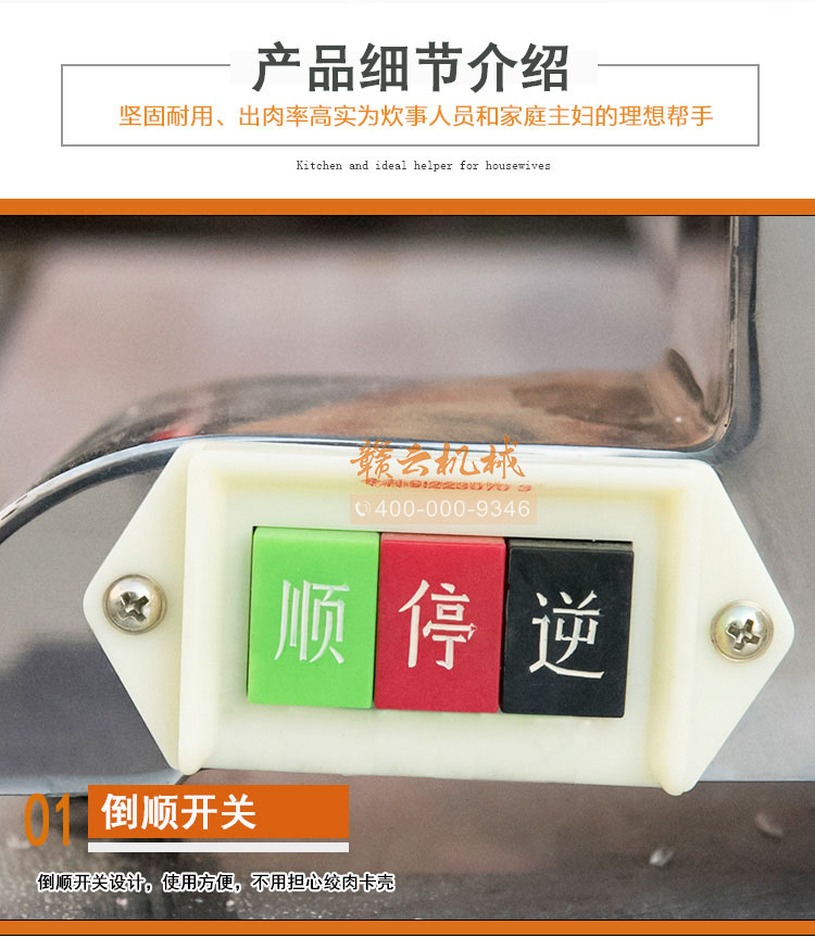 贛云牌12型臺式電動強力絞切機,絞肉切肉灌腸一體機,采用1.0kw大功率純銅電機作為動力,絞肉切肉一體,整機設計平衡性能良好,絞肉切肉速度快,絞龍采用不銹鋼材質。價格是2080元 (不含稅)